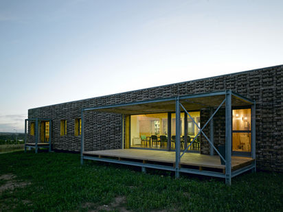 Le parti ? Rationnaliser les espaces, simplifier le volume et focaliser notre énergie sur l’extérieur. L’intérieur est une ode à l’efficacité du matériau brut, tandis que l’extérieur s’habille d’un tressage en bois tel un panier d’osier. Et quel bois! Il s’agit de douelles de tonneaux usagés récupérés dans la région. Quelle superbe opportunité pour nous que cette quantité incroyable de bois de chêne veilli, aux nuances surprenantes et dont le galbe donne vie à ce volume autrement statique.L’enveloppe du projet a été l’occasion de révéler tout le potentiel esthétique du bois. L’enchevêtrement des douelles joue avec la lumière pour créer une profondeur et révéler la matérialité d’un bois qui a connu plus d’une vie.